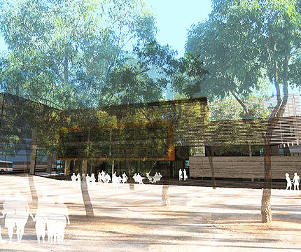 zones, one for the school and the other a public resource centre, connecting café with large
